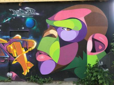 The artwork is of type graffiti. You can admire it in the city of Bordeaux in France, more precisely here: 87 Quai des Queyries, 33100 Bordeaux, France.
