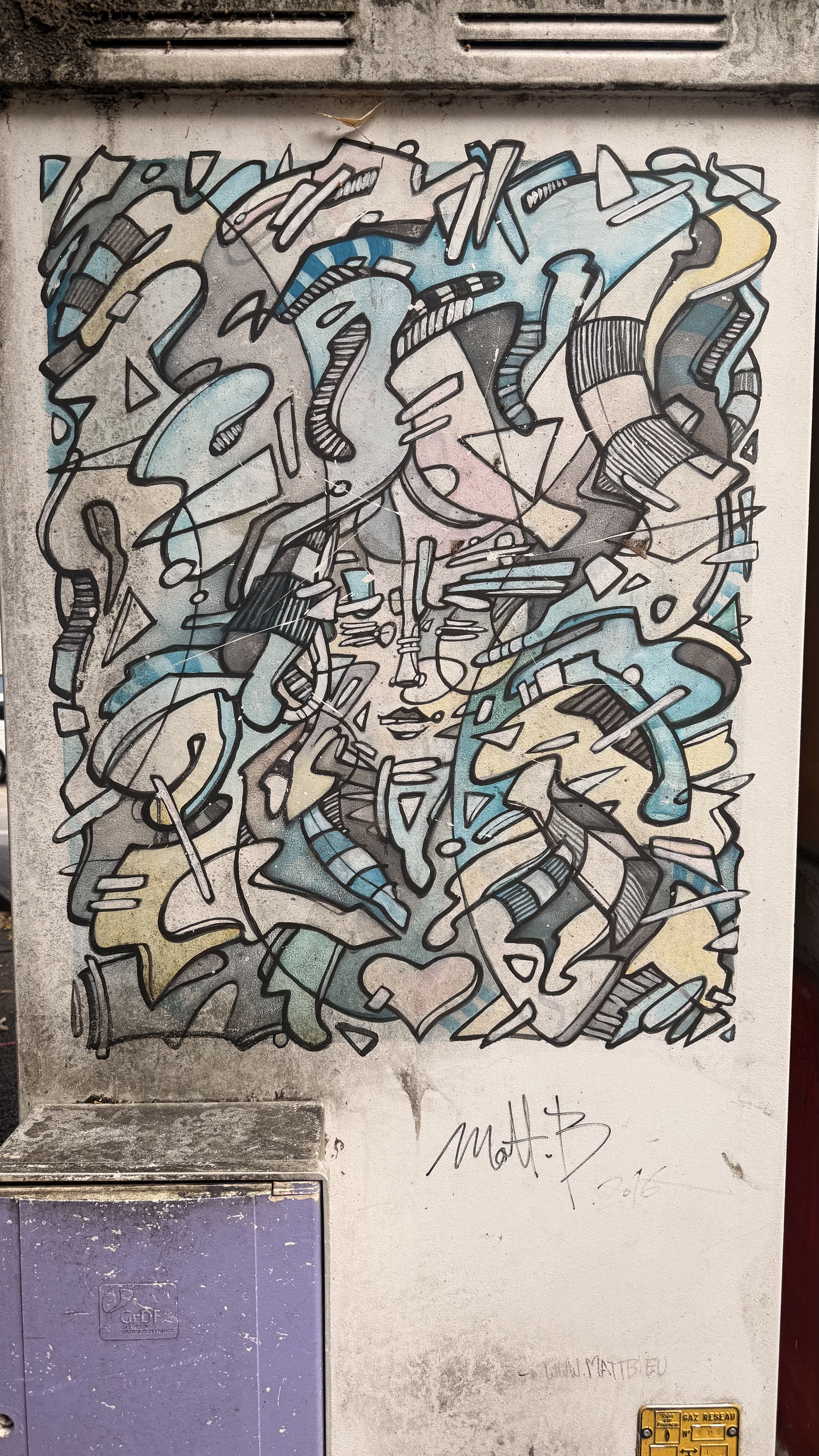The artwork is of type graffiti. You can admire it in the city of Aix-les-Bains in France, more precisely here: 20 Bis Rue du Temple, 73100 Aix-les-Bains, France.