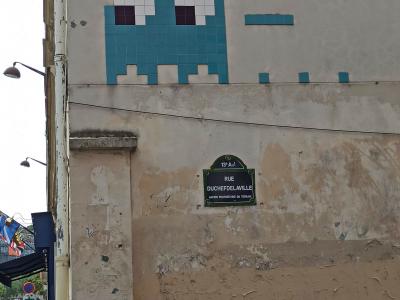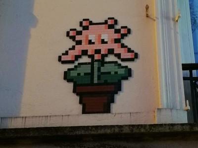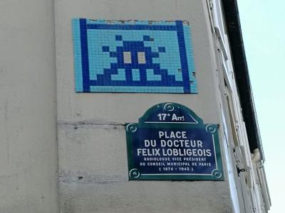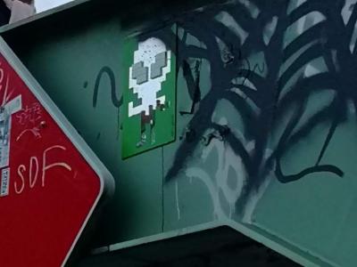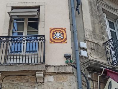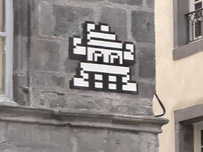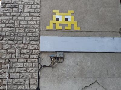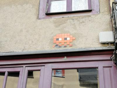 Invader (né en 1969) est le pseudonyme d'un artiste urbain français, dont le travail s'inspire de la pixellation grossière des jeux vidéo 8 bits des années 1970-1980.