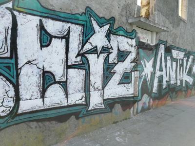 L'oeuvre est de type graffiti. Vous pouvez l'admirer dans la ville de Almada en Portugal et plus précisément ici : R. do Ginjal 65, Almada, Portugal.