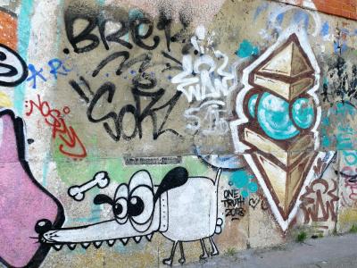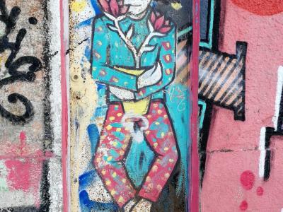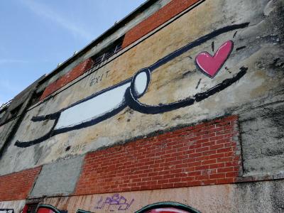 L'oeuvre est de type graffiti. Vous pouvez l'admirer dans la ville de Almada en Portugal et plus précisément ici : R. do Ginjal 65, Almada, Portugal.