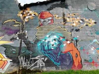 L'oeuvre est de type graffiti. Vous pouvez l'admirer dans la ville de Redon en France et plus précisément ici : 12 Quai Jean Bart, 35600 Redon, France.