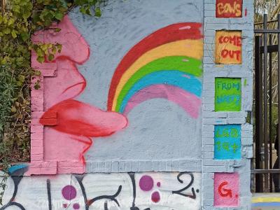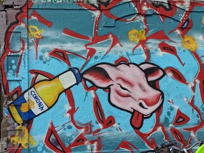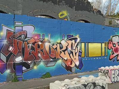 L'oeuvre est de type graffiti. Vous pouvez l'admirer dans la ville de Nantes en France et plus précisément ici : 3 Boulevard de Cardiff, 44100 Nantes, France.