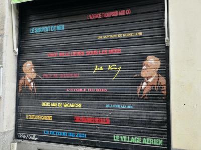 L'oeuvre est de type graffiti. Vous pouvez l'admirer dans la ville de Nantes en France et plus précisément ici : 1 Rue de la Galissonnière, 44000 Nantes, France.