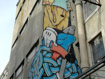 L'oeuvre est de type graffiti. Vous pouvez l'admirer dans la ville de Lisboa en Portugal et plus précisément ici : R. Rodrigues de Faria 105, 1300-501 Lisboa, Portugal.