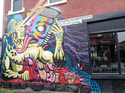 L'oeuvre est de type graffiti. Vous pouvez l'admirer dans la ville de Montréal en Canada et plus précisément ici : 3745 Boul St-Laurent, Montréal, QC H2W 1X8, Canada.