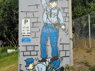 L'oeuvre est de type graffiti. Vous pouvez l'admirer dans la ville de Québec en Canada et plus précisément ici : 750 Rue Saint-Vallier E, Québec, QC G1K, Canada.