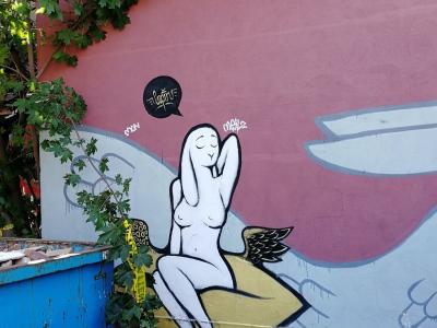 L'oeuvre est de type graffiti. Vous pouvez l'admirer dans la ville de Montréal en Canada et plus précisément ici : 2531 Avenue de la Salle, Montréal, QC H1V 2L4, Canada.
