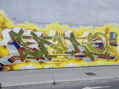 L'oeuvre est de type graffiti. Vous pouvez l'admirer dans la ville de Montréal en Canada et plus précisément ici : 1 Avenue Van Horne, Montréal, QC H2T 2J1, Canada.