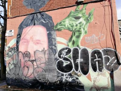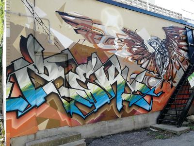 L'oeuvre est de type graffiti. Vous pouvez l'admirer dans la ville de Montréal en Canada et plus précisément ici : 549 Avenue d'Orléans, Montréal, QC H1W 3R7, Canada.