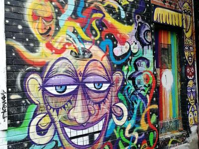 L'oeuvre est de type graffiti. Vous pouvez l'admirer dans la ville de Montréal en Canada et plus précisément ici : 87 Rue Roy E, Montréal, QC H2W 1L8, Canada.