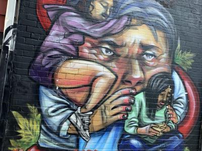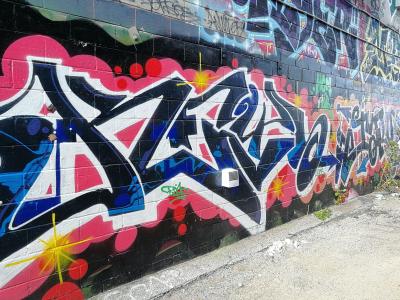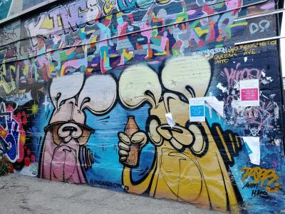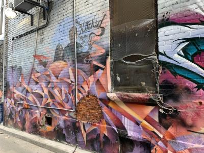 L'oeuvre est de type graffiti. Vous pouvez l'admirer dans la ville de Toronto en Canada et plus précisément ici : 52 Kensington Ave, Toronto, ON M5T 2K1, Canada.