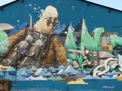 L'oeuvre est de type graffiti. Vous pouvez l'admirer dans la ville de Nantes en France et plus précisément ici : 44200 Quai Président Wilson, 44200 Nantes, France.