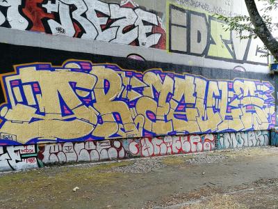 L'oeuvre est de type graffiti. Vous pouvez l'admirer dans la ville de Rennes en France et plus précisément ici : 2 Rue André Trasbot, 35000 Rennes, France.