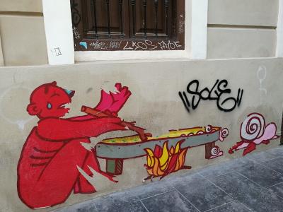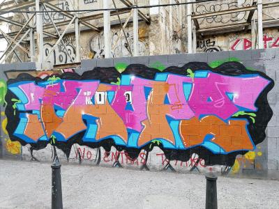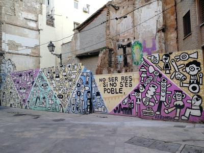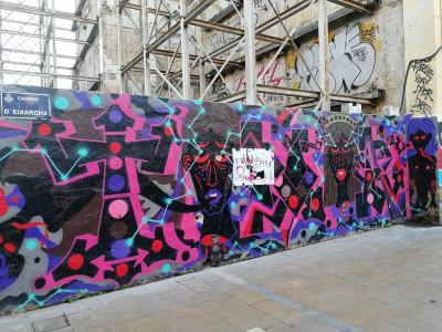 L'oeuvre est de type graffiti. Vous pouvez l'admirer dans la ville de València en Spain et plus précisément ici : Carrer d'En Colom, 24, 46001 València, Valencia, Espagne.