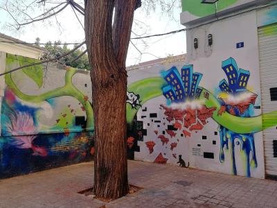 L'oeuvre est de type graffiti. Vous pouvez l'admirer dans la ville de València en Spain et plus précisément ici : Carrer dels Lleons, 64, 46022 València, Valencia, Espagne.