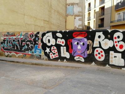 L'oeuvre est de type graffiti. Vous pouvez l'admirer dans la ville de València en Spain et plus précisément ici : Carrer del Peu de la Creu, 5, 46001 València, Valencia, Espagne.