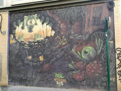L'oeuvre est de type graffiti. Vous pouvez l'admirer dans la ville de València en Spain et plus précisément ici : Plaça de Viriat, 5555, 46001 València, Valencia, Espagne.