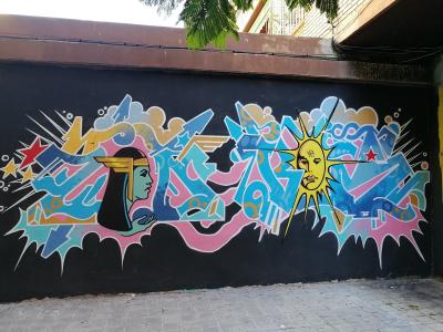 L'oeuvre est de type graffiti. Vous pouvez l'admirer dans la ville de València en Spain et plus précisément ici : Carrer del Poeta Mas i Ros, 43, 46022 València, Valencia, Espagne.