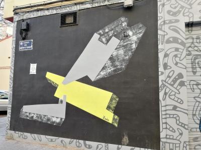L'oeuvre est de type graffiti. Vous pouvez l'admirer dans la ville de València en Spain et plus précisément ici : Carrer de Zarra, 67, 46022 València, Valencia, Espagne.