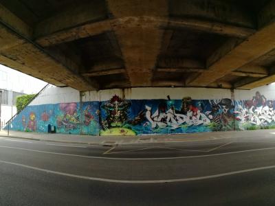 L'oeuvre est de type graffiti. Vous pouvez l'admirer dans la ville de Nantes en France et plus précisément ici : Bassin du Tripode, 11 Prom. Europa, 44200 Nantes, France.