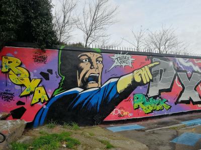 L'oeuvre est de type graffiti. Vous pouvez l'admirer dans la ville de Nantes en France et plus précisément ici : 9 Rue du Séchoir, 44100 Nantes, France.