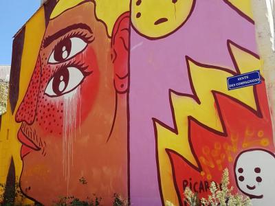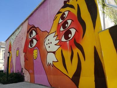 L'oeuvre est de type graffiti. Vous pouvez l'admirer dans la ville de Bordeaux en France et plus précisément ici : 72 Rue Bourbon, 33300 Bordeaux, France.