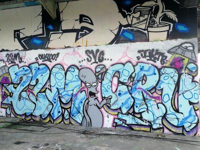 L'oeuvre est de type graffiti. Vous pouvez l'admirer dans la ville de Saint-Brieuc en France et plus précisément ici : 9 Rue de la ville Audry, 22000 Saint-Brieuc, France.