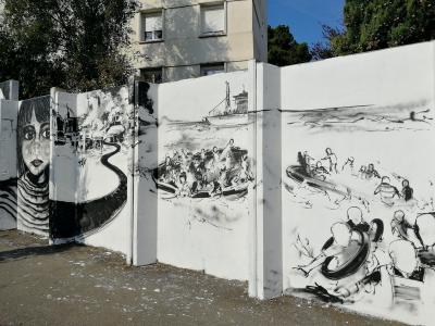 L'oeuvre est de type graffiti. Vous pouvez l'admirer dans la ville de Nantes en France et plus précisément ici : 5 Boulevard Benoît Frachon, 44100 Nantes, France.