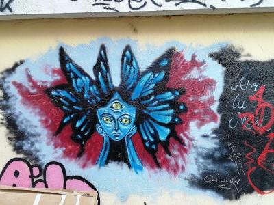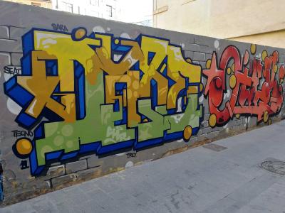 L'oeuvre est de type graffiti. Vous pouvez l'admirer dans la ville de València en Spain et plus précisément ici : 12 Plaça del Centenar de la Ploma, 46003 València, Spain.