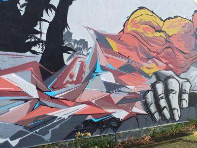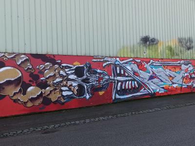 L'oeuvre est de type graffiti. Vous pouvez l'admirer dans la ville de Lorient en France et plus précisément ici : 2 Rue Florian Laporte, 56100 Lorient, France.