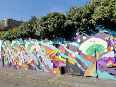 L'oeuvre est de type graffiti. Vous pouvez l'admirer dans la ville de Nantes en France et plus précisément ici : 21 Bis Bd DuBatonnier, Rue Joseph Cholet, 44100 Nantes, France.