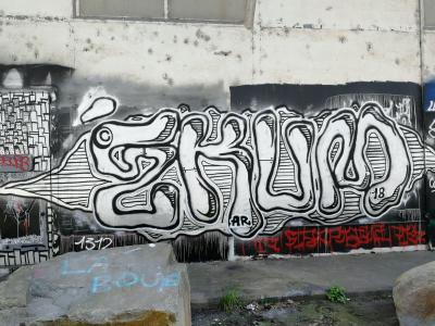 L'oeuvre est de type graffiti. Vous pouvez l'admirer dans la ville de Nantes en France et plus précisément ici : Grands Moulins de Nantes, 1 - 3 Rue Marcel Sembat, 44100 Nantes, France.
