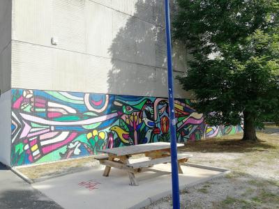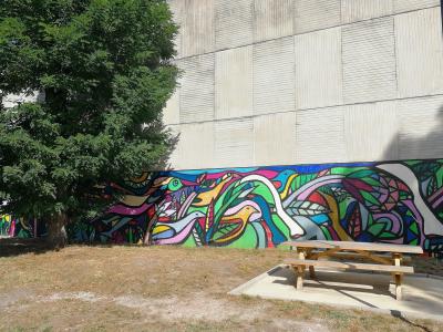 L'oeuvre est de type graffiti. Vous pouvez l'admirer dans la ville de Pessac en France et plus précisément ici : 1er étage Bâtiment A, Av. Jean Babin, 33600 Pessac, France.