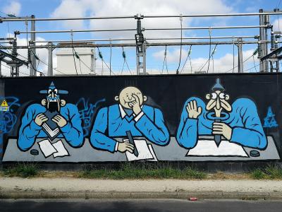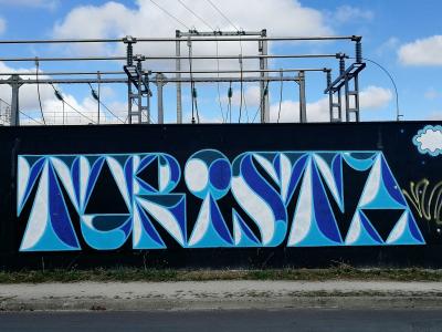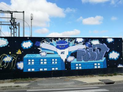 L'oeuvre est de type graffiti. Vous pouvez l'admirer dans la ville de Pessac en France et plus précisément ici : 85 Av. des Arts, 33600 Pessac, France.