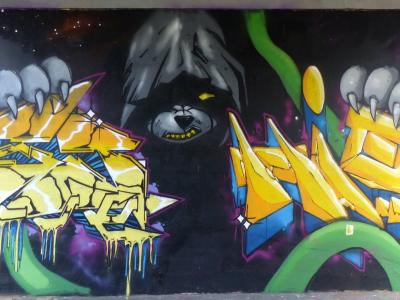 L'oeuvre est de type graffiti. Vous pouvez l'admirer dans la ville de Nantes en France et plus précisément ici : 25 rue de la Resistance, 44200 Nantes, France.
