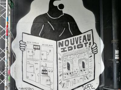 L'oeuvre est de type graffiti. Vous pouvez l'admirer dans la ville de Paris en France et plus précisément ici : 200 Quai de Valmy, 75010 Paris, France.
