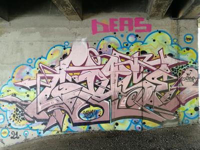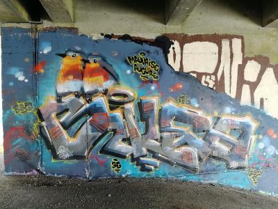 L'oeuvre est de type graffiti. Vous pouvez l'admirer dans la ville de Nantes en France et plus précisément ici : Avenue Jean Claude Bonduelle, 44000 Nantes, France.