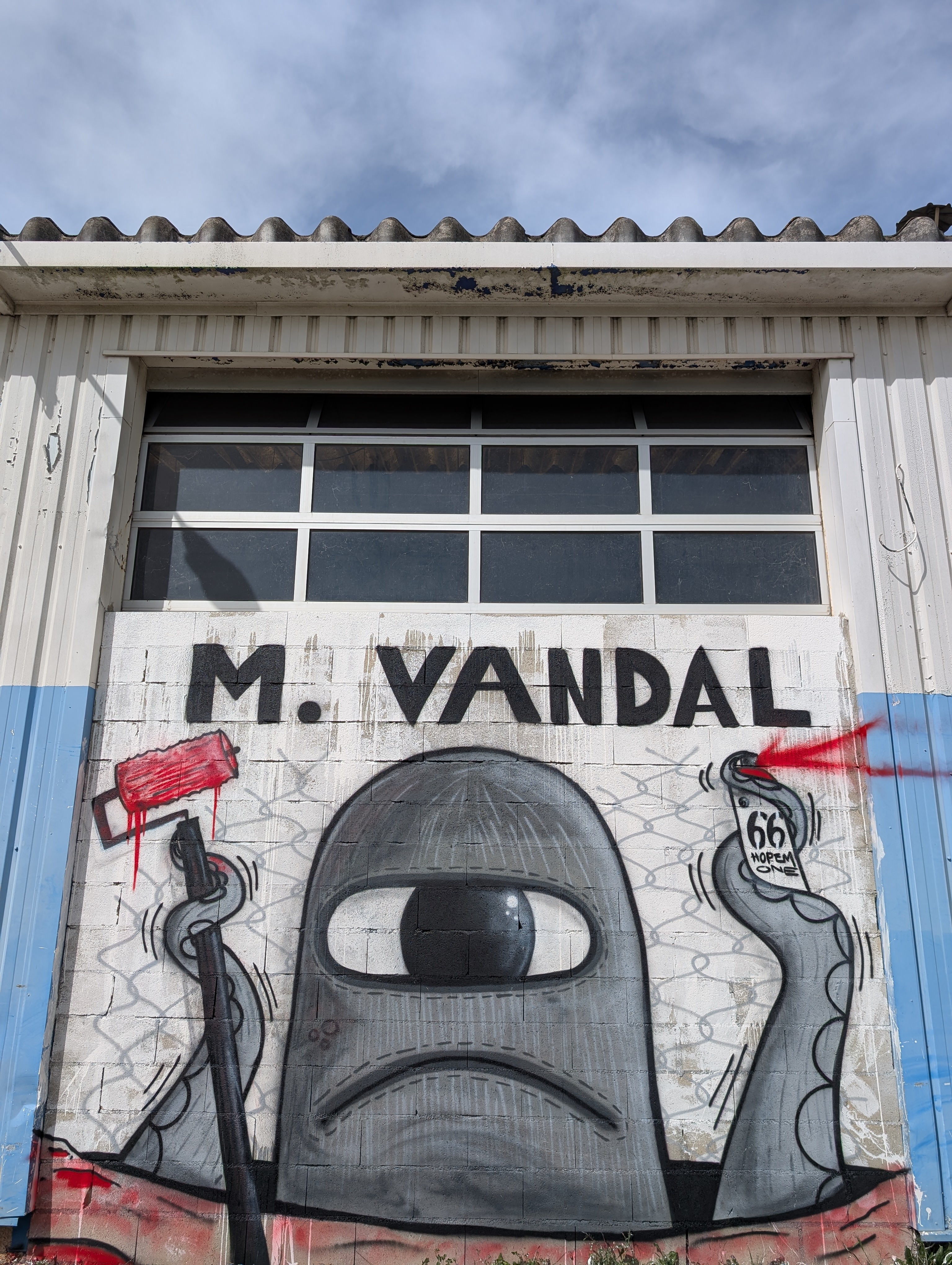 L'oeuvre M. Vandal par Hopem Story est de type graffiti. Vous pouvez l'admirer dans la ville de Carcassonne en France et plus précisément ici : 229 Rue Lamarck, 11000 Carcassonne, France.
