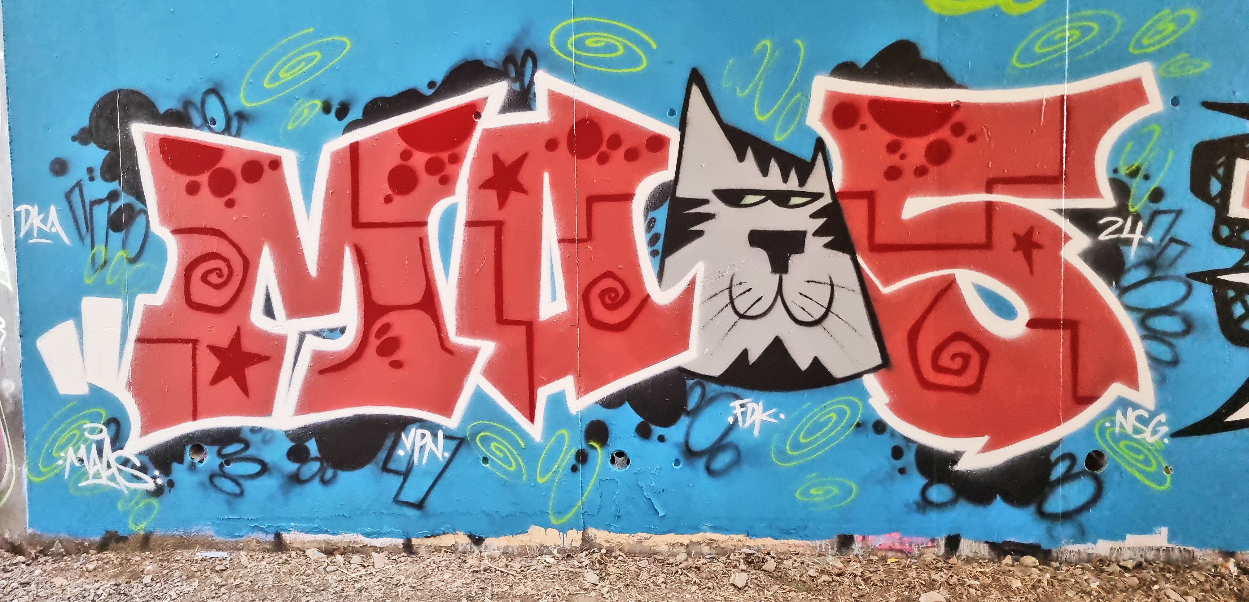 L'oeuvre Maas est de type graffiti. Vous pouvez l'admirer dans la ville de Angers en France et plus précisément ici : FFR7+87 Angers, France.