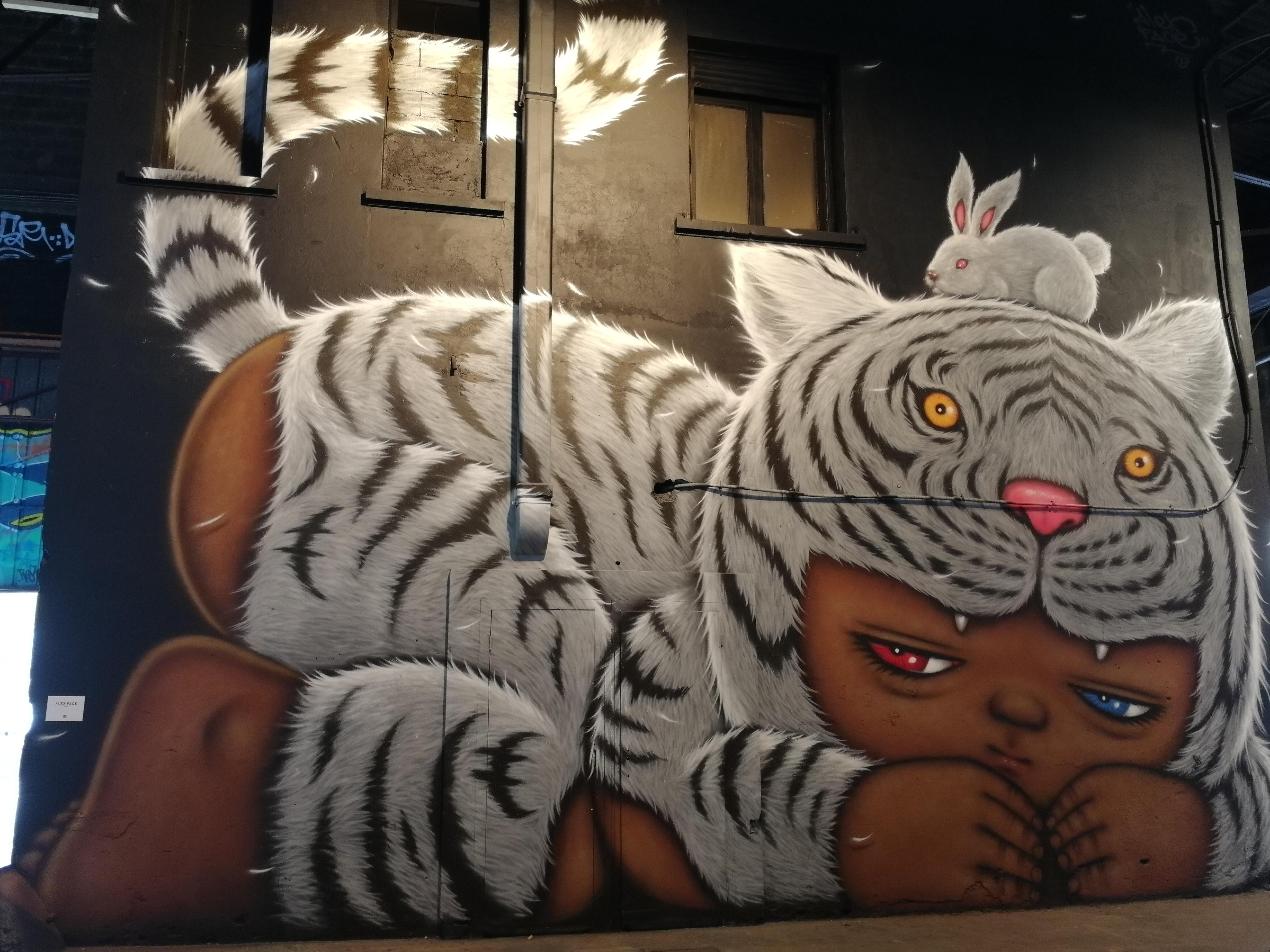 À 38 ans, il est la figure de proue du street art thaïlandais : Alex Face, qui doit son pseudo au fait qu’il peignait son visage plutôt que son nom durant ses sept premières années d’artiste, vit et œuvre à Bangkok où il a commencé par étudier l’architecture et ainsi découvert l’excitation des déambulations urbaines et de la découverte de bâtiments abandonnés. Depuis la naissance de sa fille, inquiet du monde que nous allons laisser, celui qui se nomme Patcha- rapol Tangruen à l’état-civil peint désormais des bébés en colère dans des costumes d’animaux, afin d’alerter sur le sort des générations futures. Ses techniques : multiples, de la bombe à la peinture à l’huile - même s’il privilégie le spray pour s’exprimer sur les murs. Alex Face, ou l’artiste conscient.