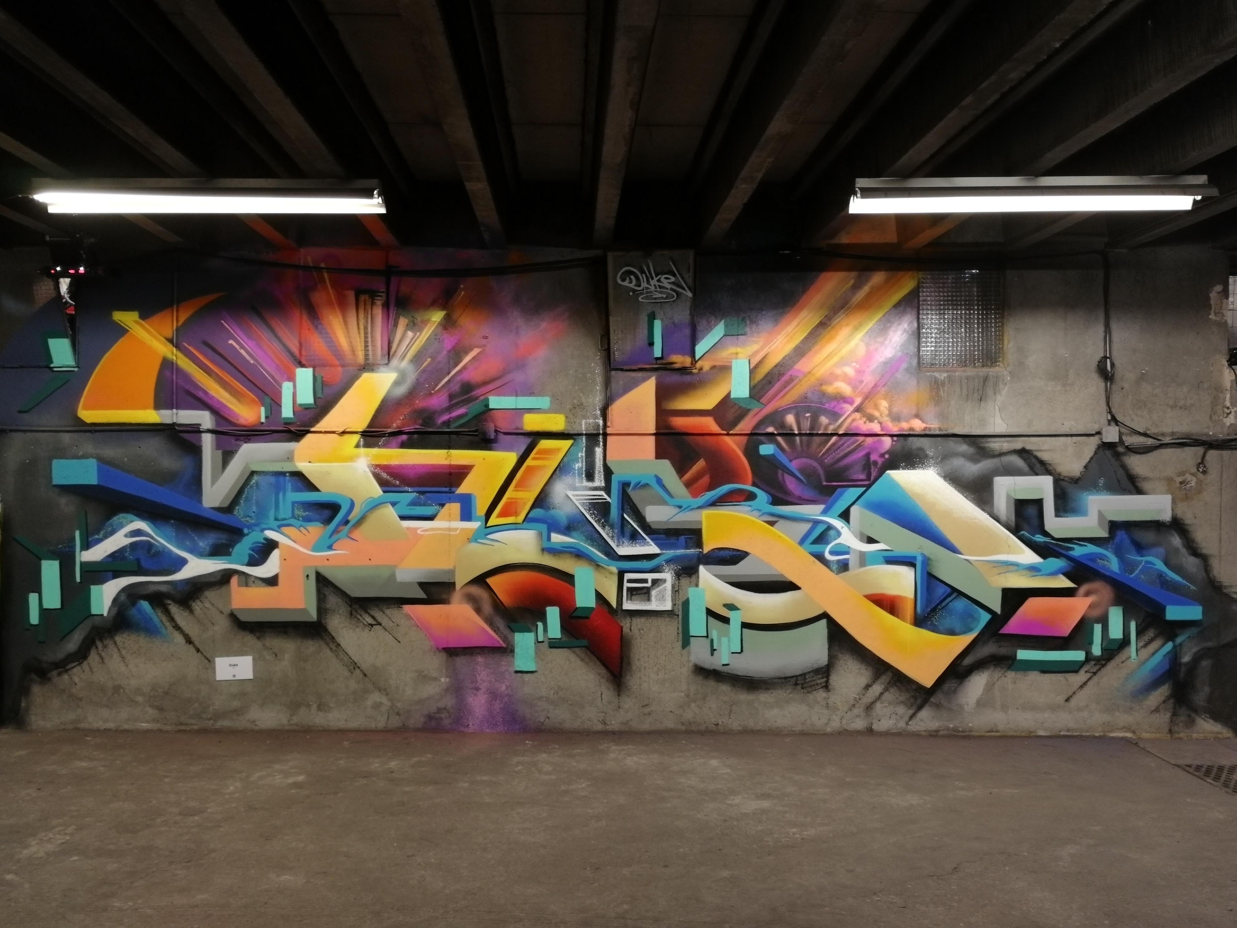 Passionné de lettres depuis le début des années 90, Duke peint à l’aérosol sous influence musicale. Il se base sur une pratique traditionnelle, et développe un travail expérimental qui tend vers l’abstraction.