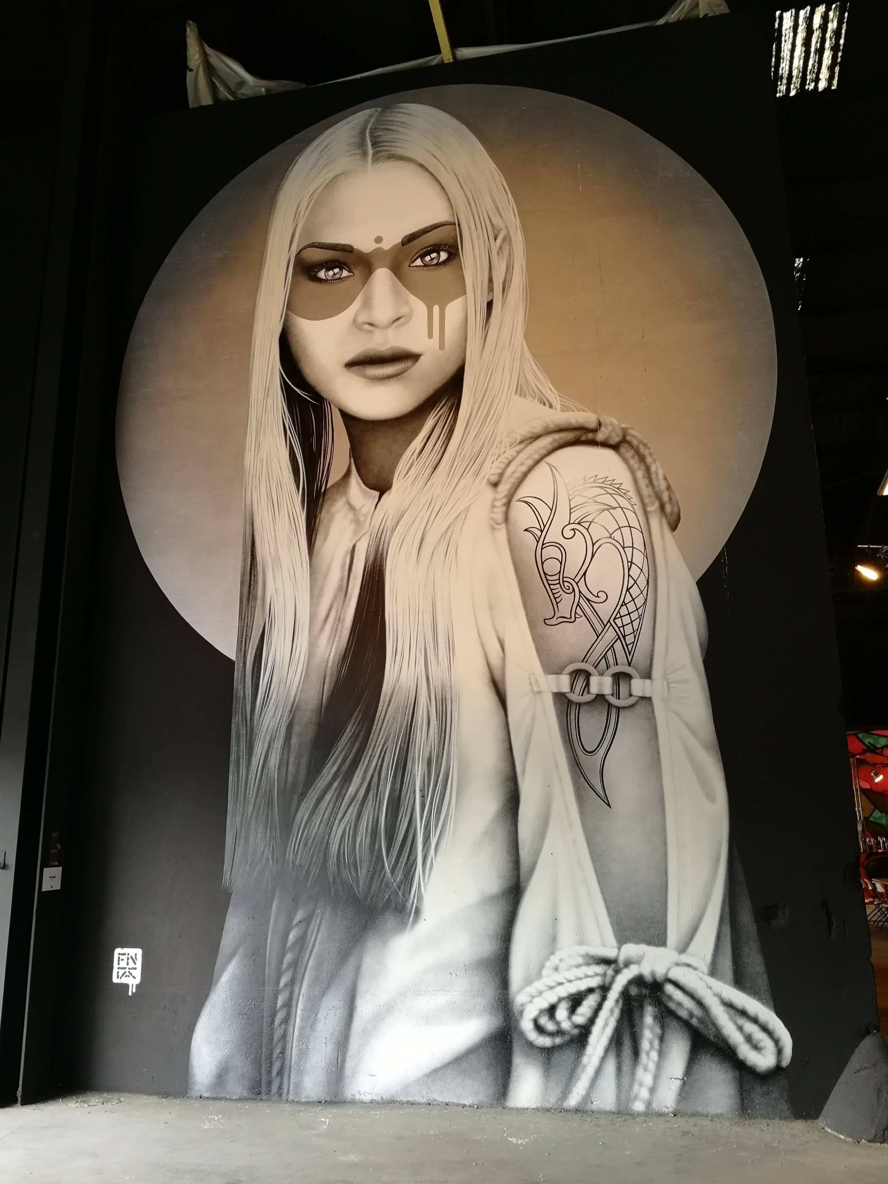 Ses geishas modernes en noir et blanc, souvent nues, tatouées, ont fait le tour du monde et il a été la coqueluche de la dernière Art Basel, l’art fair de Miami. Une valeur sûre de l’art urbain ! Né à Cork en Irlande, Fin Dac vit aujourd’hui à Londres où il dirige une galerie de street art à Soho, baptisée Beautiful Crimes. Sur la scène depuis 2008, il a œuvré pour les Jeux Olympiques de 2012 ou encore pour des marques comme Armani. Sa technique mêlant pochoir et peinture pop en fait un artiste unique.