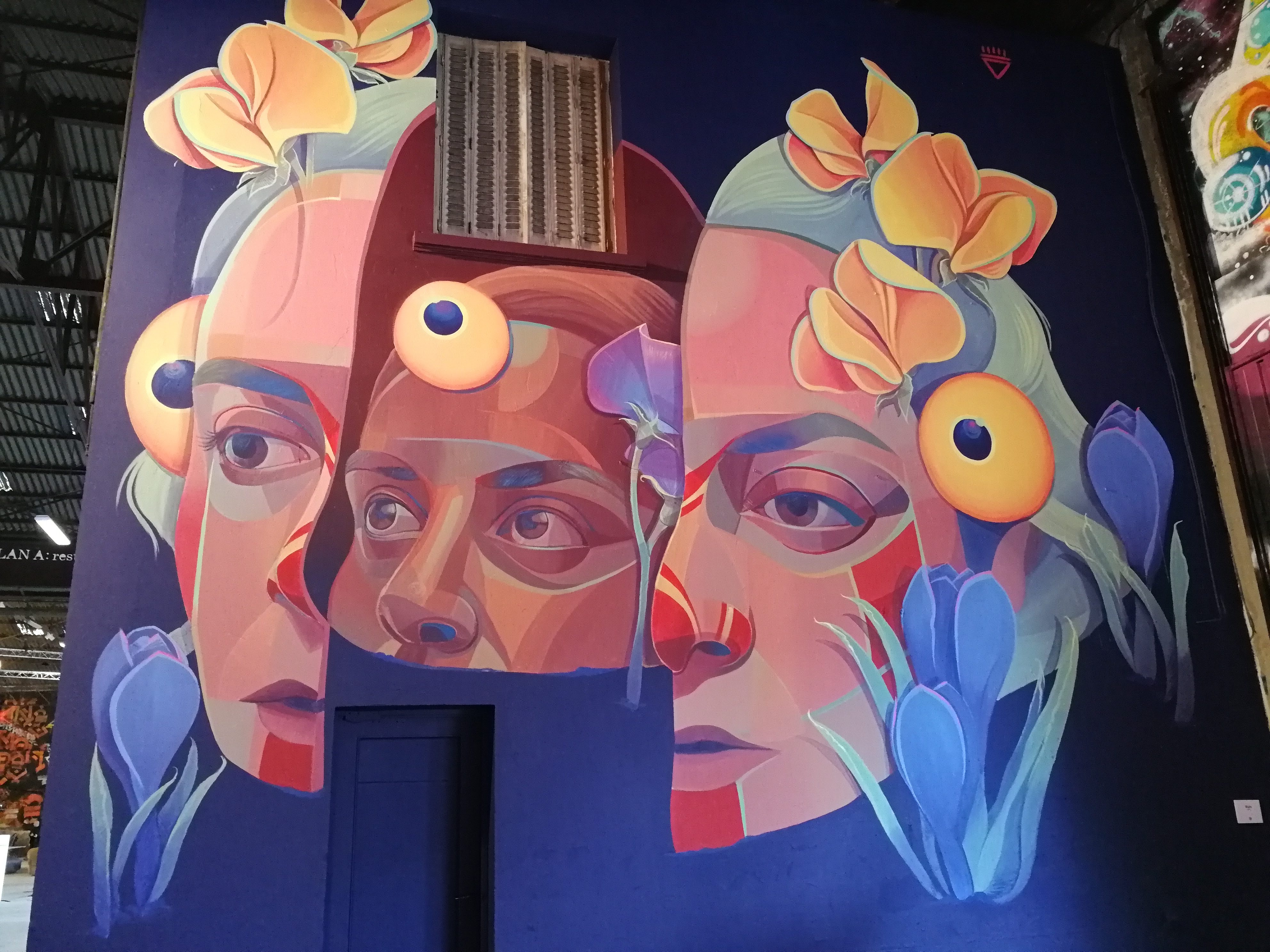 Les créations de Gleo captent le regard instantanément et ne vous lâchent plus : ultra colorées, soignées jusqu’au moindre détail, ses peintures attisent l’imagination. Fruit de la nouvelle scène fort dynamique de Colombie, elle vient de Cali et a commencé à peindre à 17 ans, se passionnant pour les cultures ancestrales et l’art primaire de son continent. Elle vit désormais à Bogotá et parsème les murs des grandes capitales d’Amérique du Sud de ses fresques, parfois gigantesques, jouant de la lumière et de l’obscurité, du divin et du terrestre. Sa signature : les masques inspirés de l’animalité. Un monde enchanté, fantastique, qui fait de Gleo l’une des artistes sud-américaines à suivre de près !