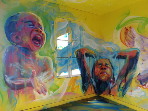 C'est au premier étage que 45 nouvelles pièces rejoignent la quarantaine déjà présente du rez-de-chaussé. Les artistes (Sema Lao, Korsé, Cartel 29, Kelkin...) ont eu plus de liberté pour s'approprier l'endroit, ce qui nous donne des atmosphères très particulières au fil des ouvertures de portes.