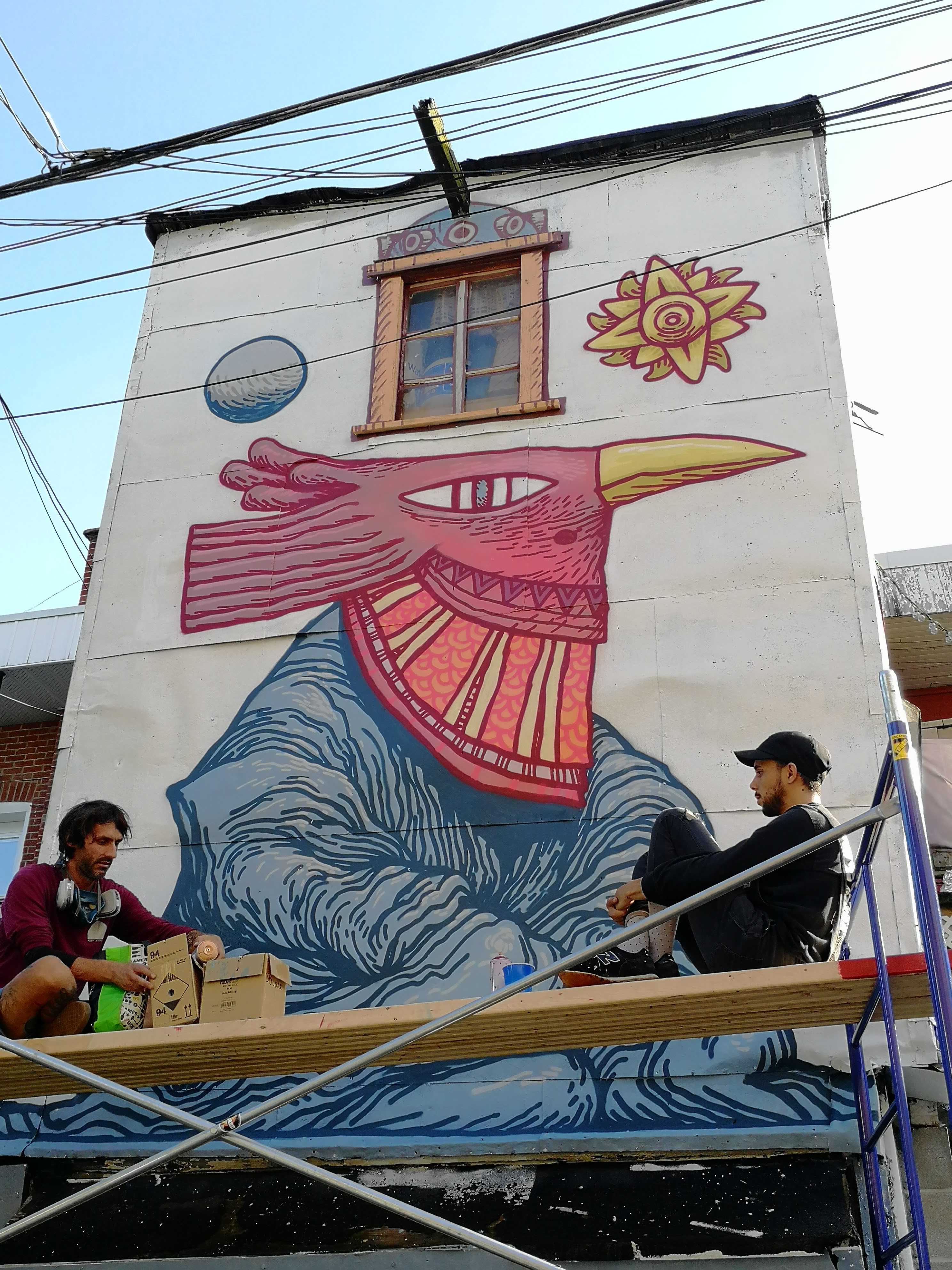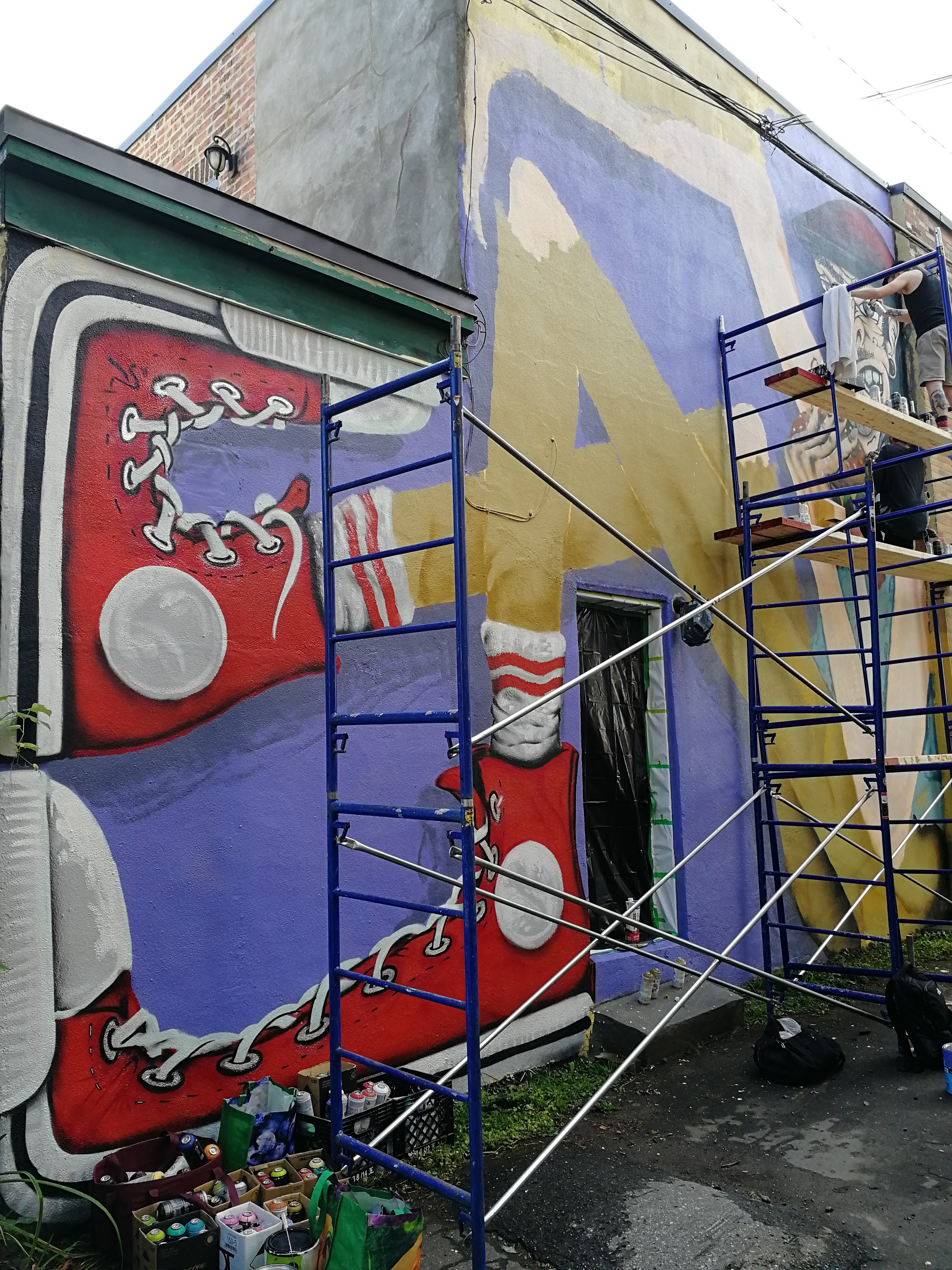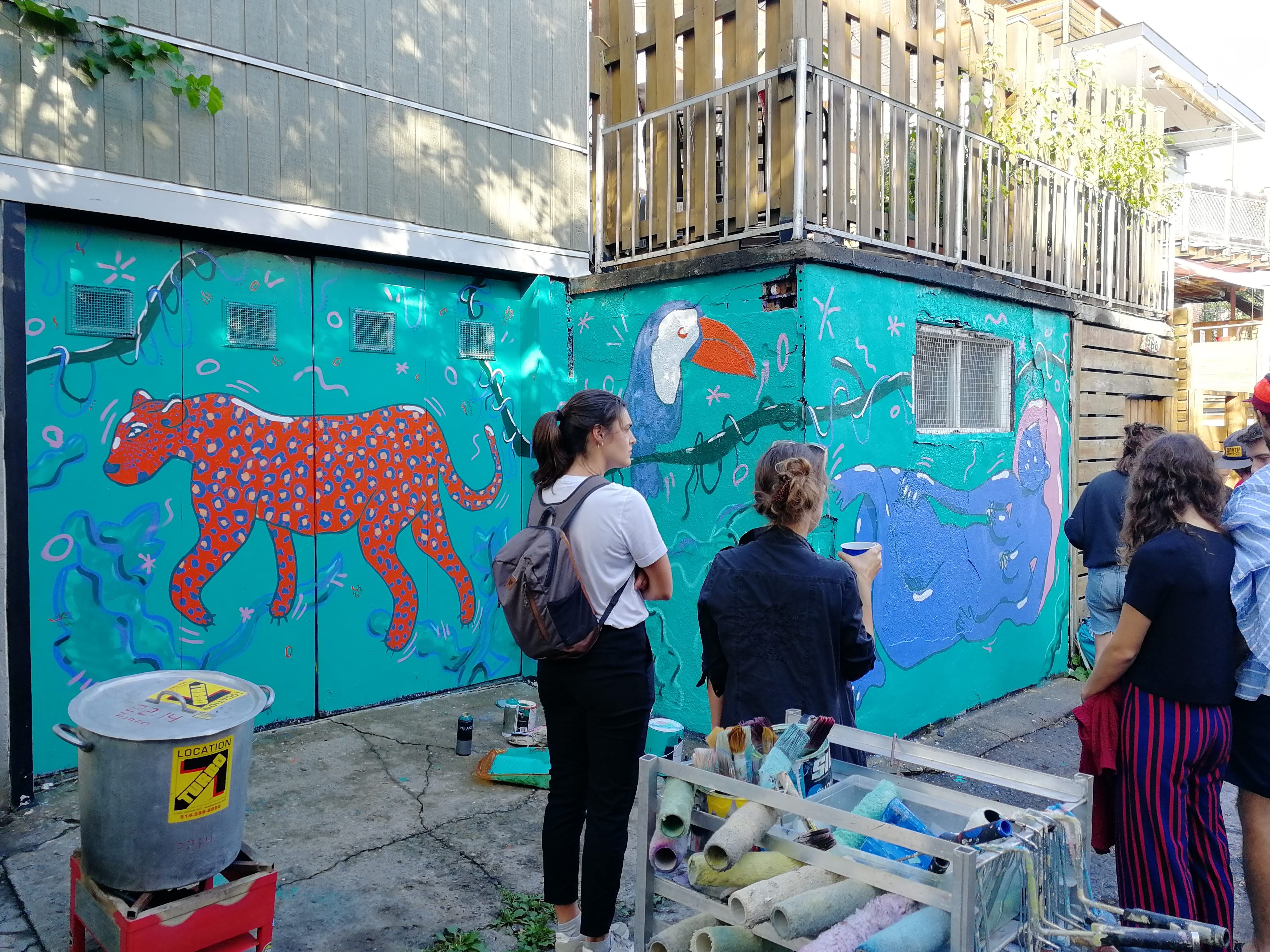 - des donations de peintures, prêts d'équipements... par les habitants du quartier. Certains venaient même avec de la nourriture pour remplir le ventre des artistes pendant qu'ils travaillaient :)