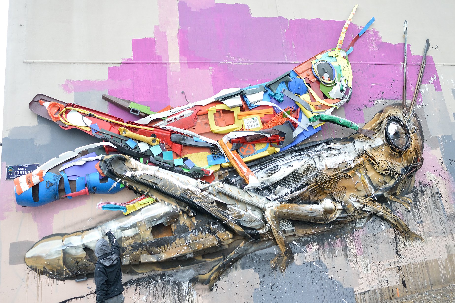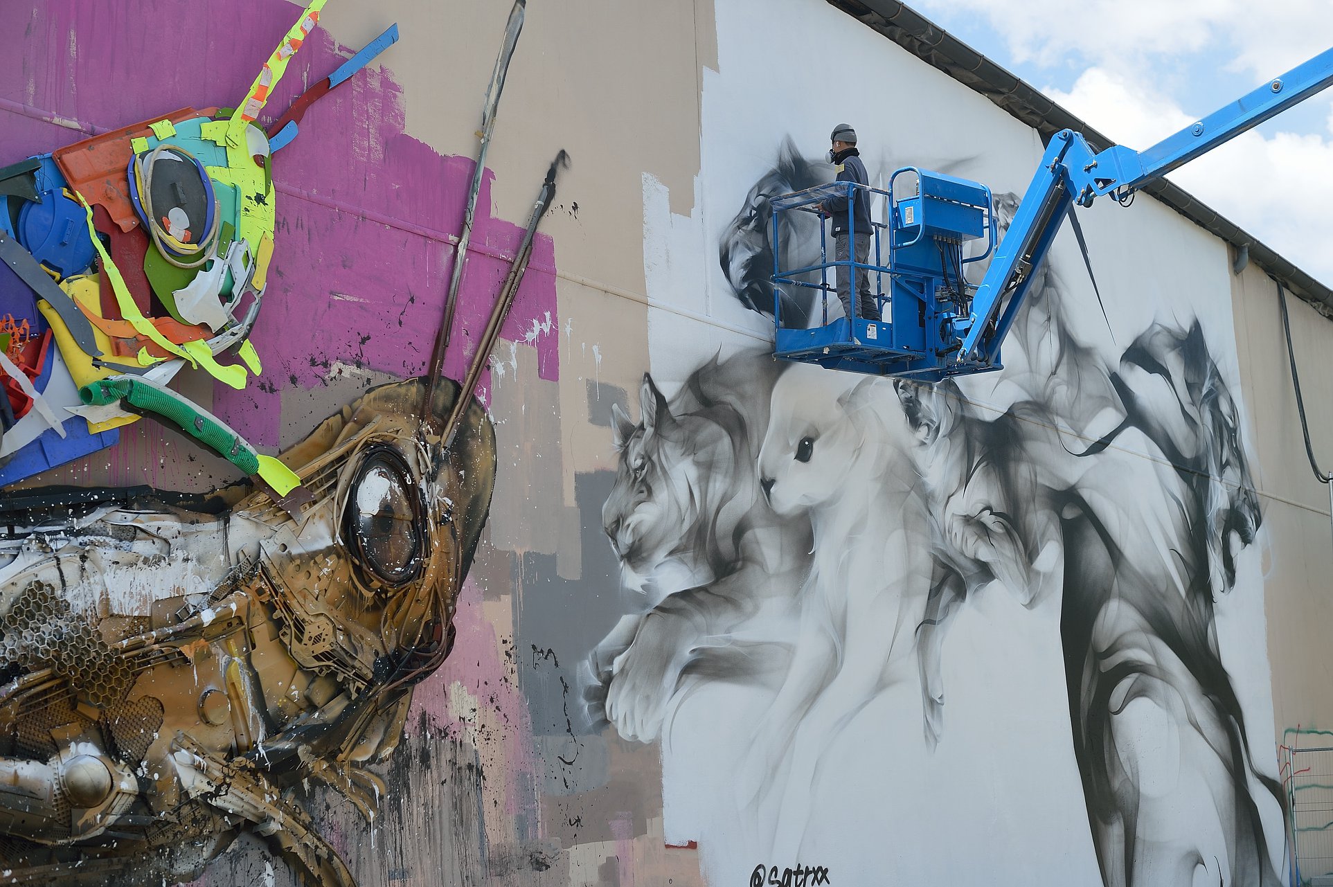 Sur le mur extérieur se sont succédés Bordalo II, MissMe, SATR