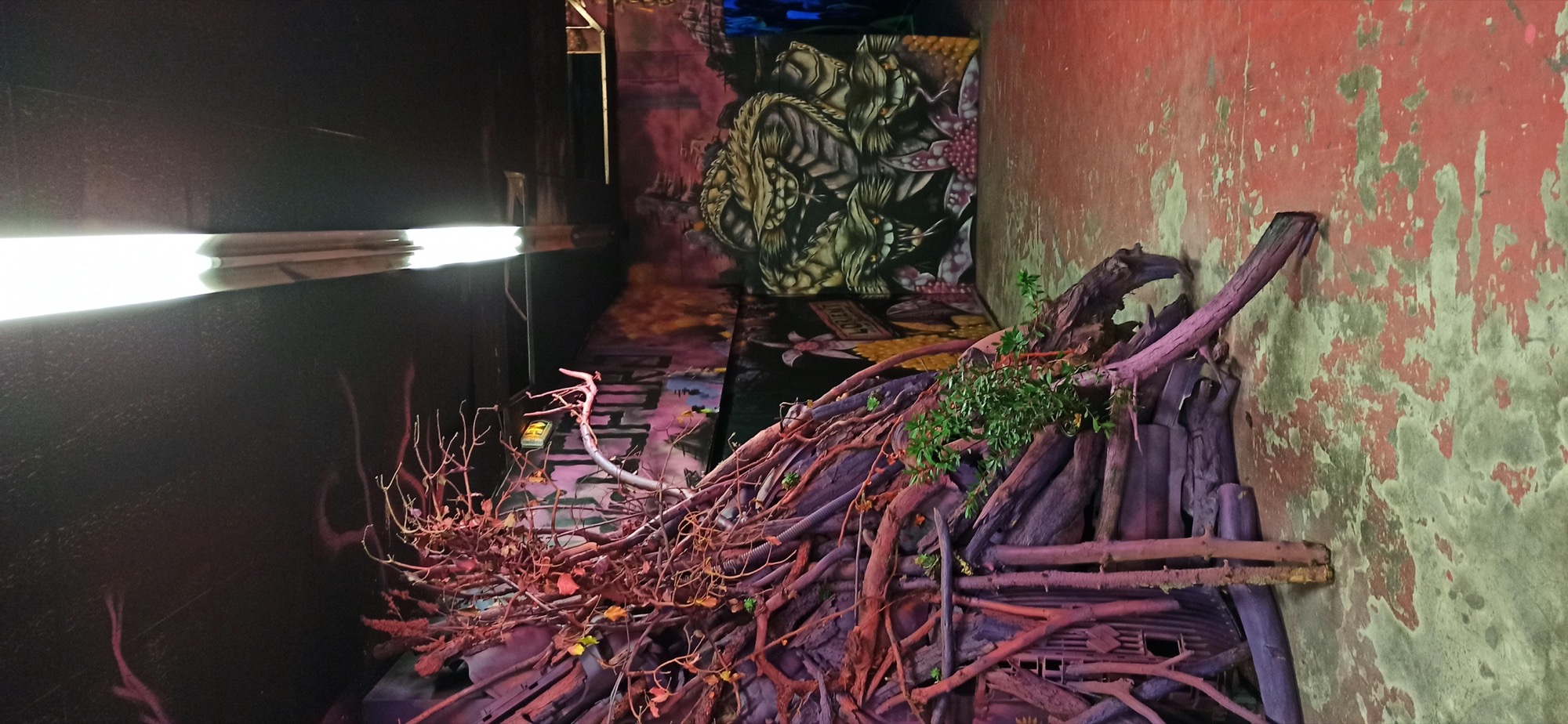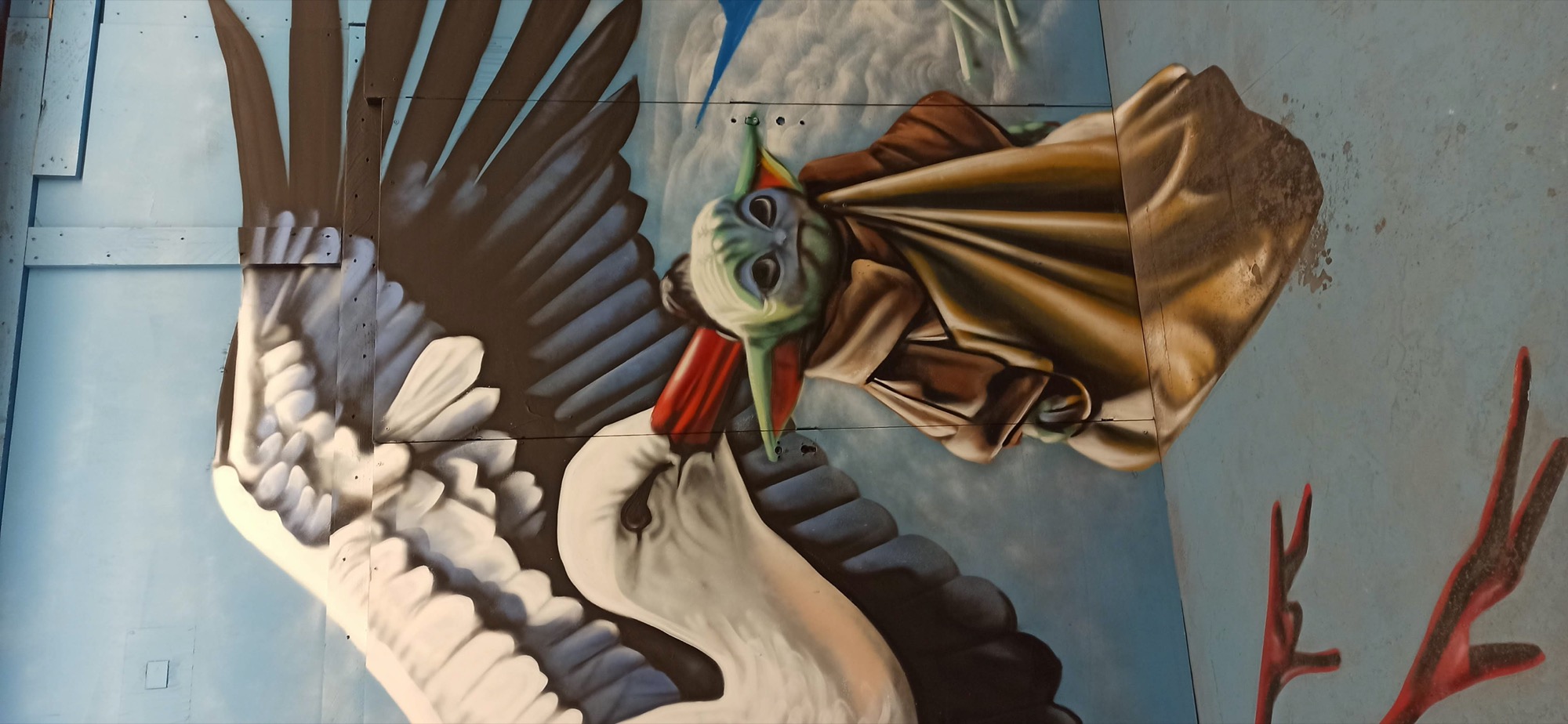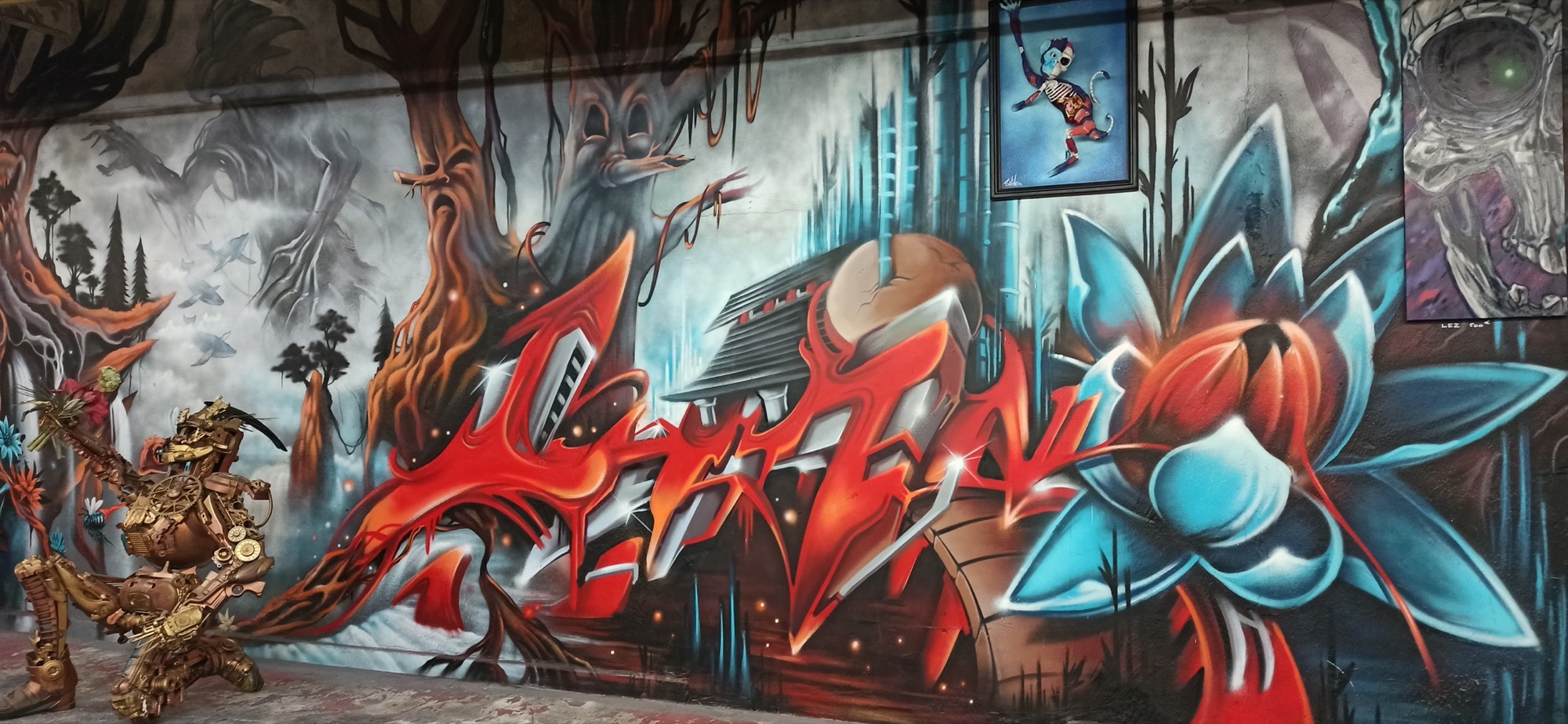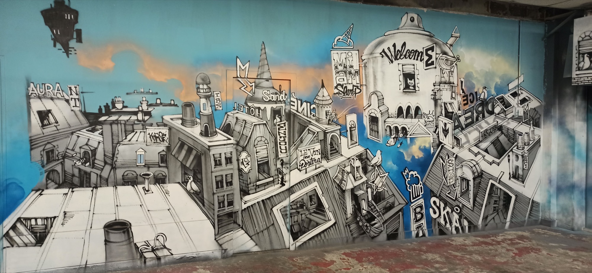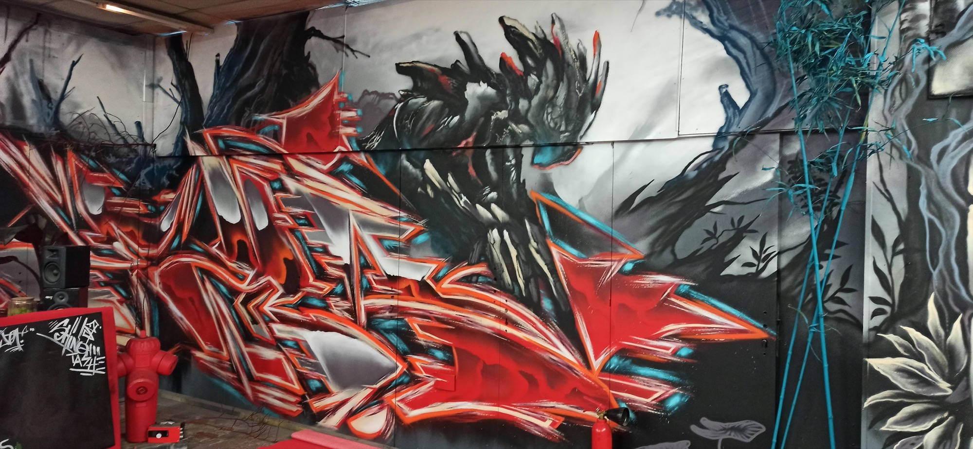 Le promoteur immobilier Seemo est à l’initiative de ce projet dans ce lieu voué à la démolition, plus de 600m² ont été recouverts de peintures et d’installations artistiques, par plus de 25 artistes, sur le thème « quand la nature reprend ses droits ». Une thématique appréciée par le crew breton qui réalise souvent des fresques avec des paysages post-apocalyptiques où la flore et la faune sauvage prennent le pas sur l’humanité.