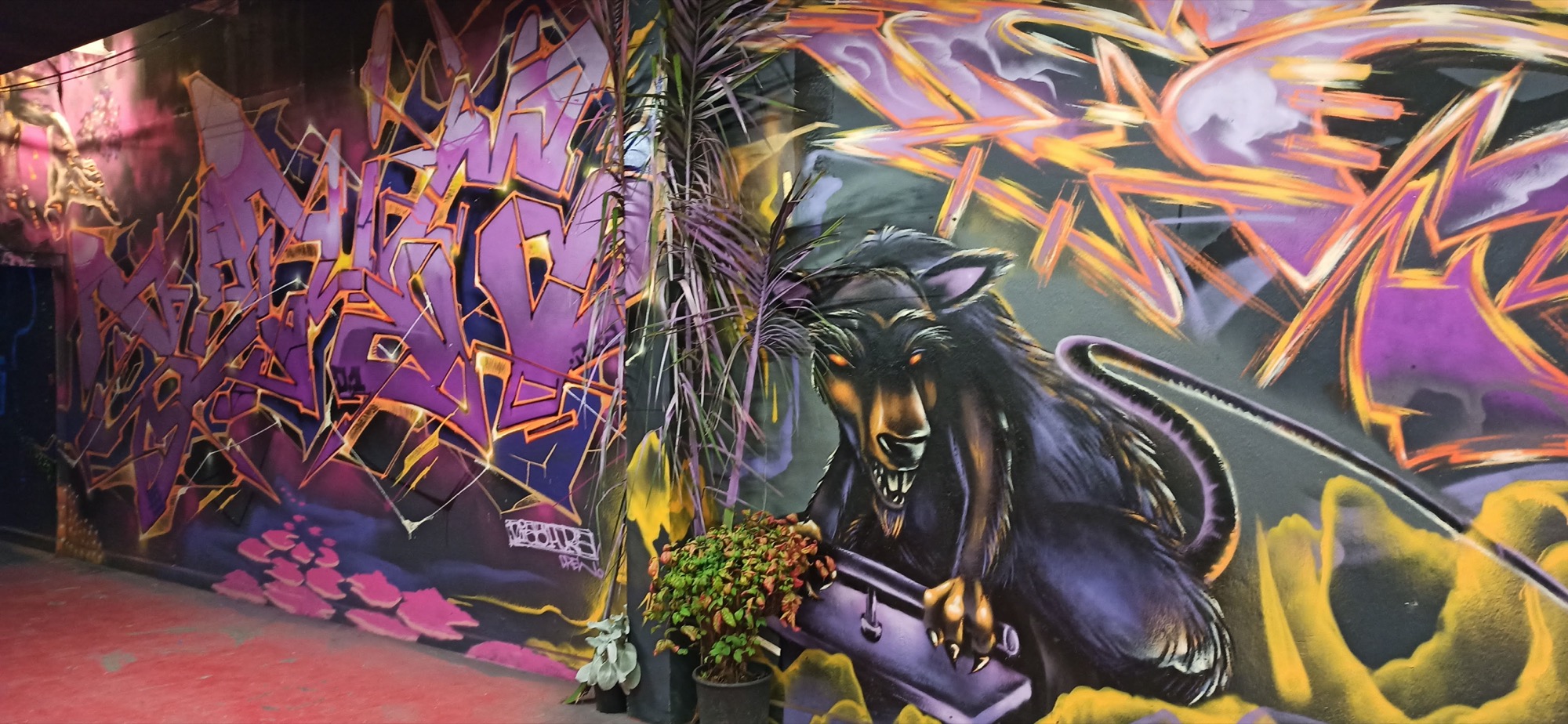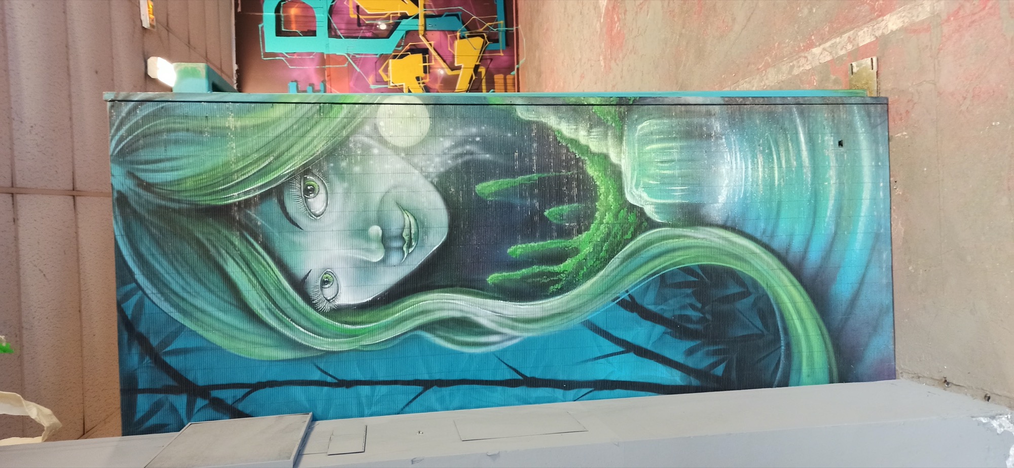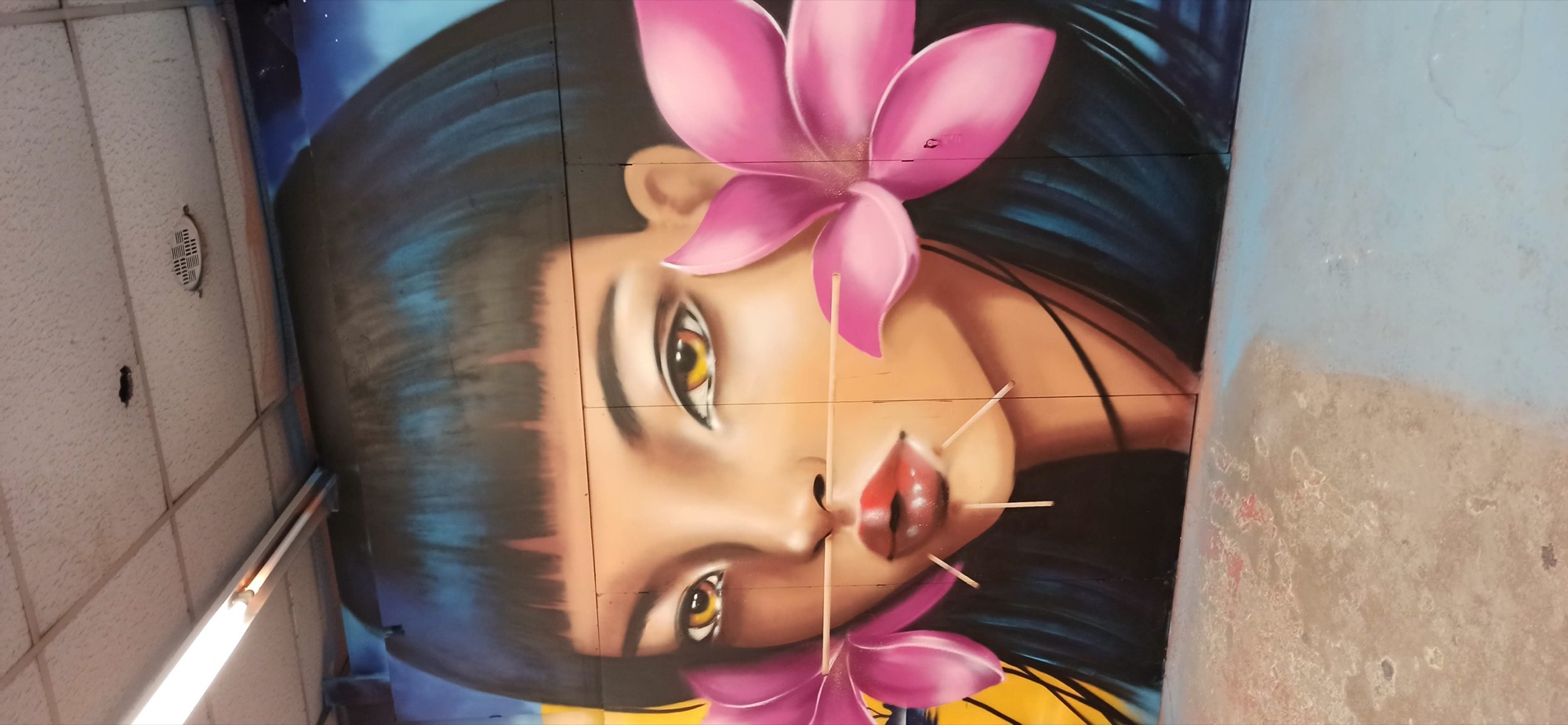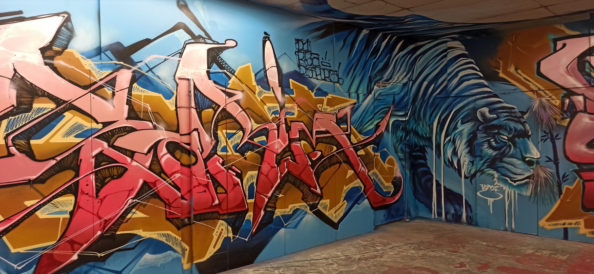Les membres du Diaspora crew ont récupéré 97 portes du bâtiment pour créer un parcours respectant les mesures contre la covid, ce qui par la même occasion a multiplié la surface de peinture pour notre plus grand plaisir.