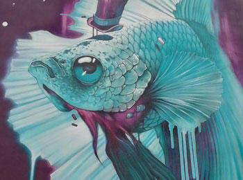Born in 1978 in Gabon, lives in Lyon and currently works in the BLAST collective. From collaborative projects to solo works, he perfectly masters his favorite tool: the bomb! This technicality, allows him to go smoothly from the conception and realization of large frescoes, to the exhibition of works of more modest size.